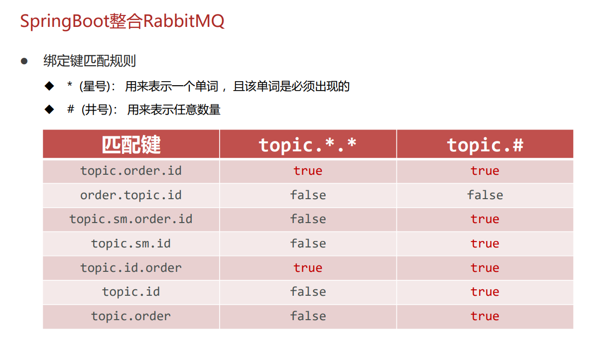 package com.ganga.topic.config;import org.springframework.amqp.core.Binding;import org.springframework.amqp.core.BindingBuilder;import org.springframework.amqp.core.Queue;import org.springframework.amqp.core.TopicExchange;import org.springframework.context.annotation.Bean;import org.springframework.context.annotation.Configuration;@Configuration public class TopicExchangeConfig { @Bean public Queue queueTopic () { return new Queue ("topic_queue_uid" ); } @Bean public Queue queueTopic2 () { return new Queue ("topic_queue2_uid" ); } @Bean public TopicExchange topicExchange () { return new TopicExchange ("topicExchange" ); } @Bean public Binding topicBinding () { return BindingBuilder .bind(queueTopic()).to(topicExchange()).with("topic.user.*" ); } @Bean public Binding topicBinding2 () { return BindingBuilder .bind(queueTopic2()).to(topicExchange()).with("#.uid" ); } }